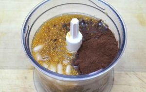 - ثم ضعي الفاصوليا والكاكاو والفركتوز والفانيليا الخليط.
