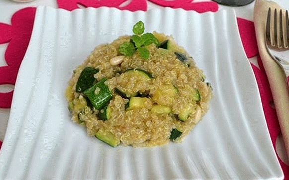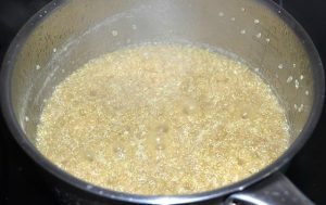 - شطف الكينوا جيدا ، ثم تضاف إلى وعاء من الماء ويطهى لمدة 15 دقيقة بعد الغليان.