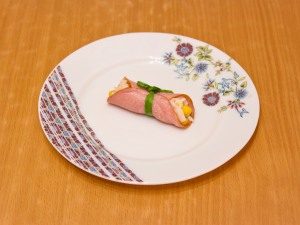 - لفة لحم الخنزير مع ملء. التعادل مع شعاع أخضر.