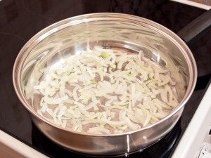 - يقلى البصل المفروم في الزيت النباتي المسخن