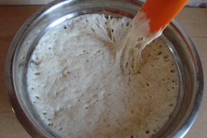 في المساء في وعاء منفصل ، تحتاج إلى عمل عجين. بالنسبة لها سيحتاج المستحضر إلى 200 غرام من الطحين و 240 مل من الماء والخميرة. جميع تخلط جيدا وتعجن الخليط. الاتساق ينبغي تبدو وكأنها القشدة الحامضة سميكة.