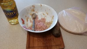 - قشر البطاطا وتضاف إلى اللحم المفروم ، واخلطيها.