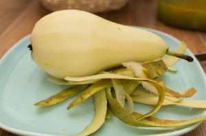 - قشر الكمثرى وإزالة جوهرها.