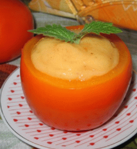 - ملء أكواب البرسيمون مع الخليط أعد ، يرش قرفة ومزيّنة بأوراق النعناع.