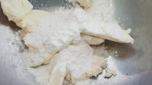 - فاز جبنة اللبن الرائب مع السكر المجفف خلاط.