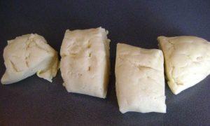 - تسخين الماء إلى 25-30 درجة مئوية ويذوب الخميرة الجافة فيه. يضاف زيت الزيتون والدقيق.