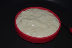 - في مقلاة جافة مع طلاء غير لاصق ، موقد فطيرة به وجهان ، يمكنك استخدام قالب سيليكون خاص.