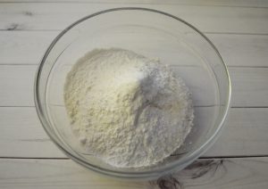 - يُمزج الفانيلين ومسحوق الخبز والدقيق.