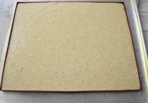 - صب العجين على حصيرة سيليكون وإرسالها إلى التسخين إلى 180 درجة الفرن لمدة عشر إلى اثني عشر دقيقة.
